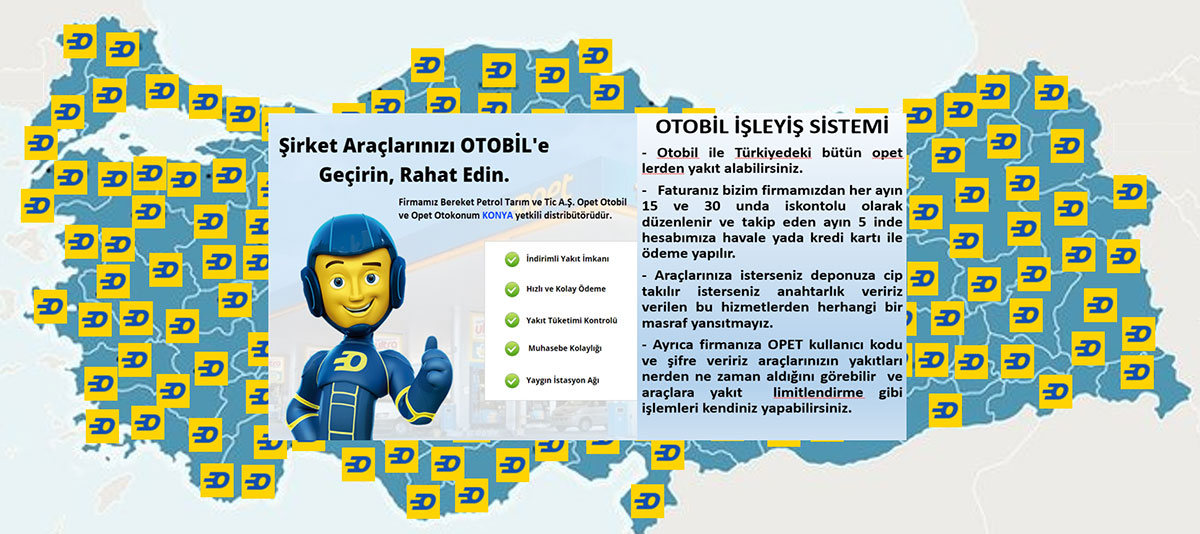 Firmamız Bereket Petrol Tarım ve Tic A.Ş. OPET OTOBİL Taşıt Tanıma Sistemleri ve OPET OTOKONUM Araç Takip Sistemleri KONYA yetkili distribütörüdür.